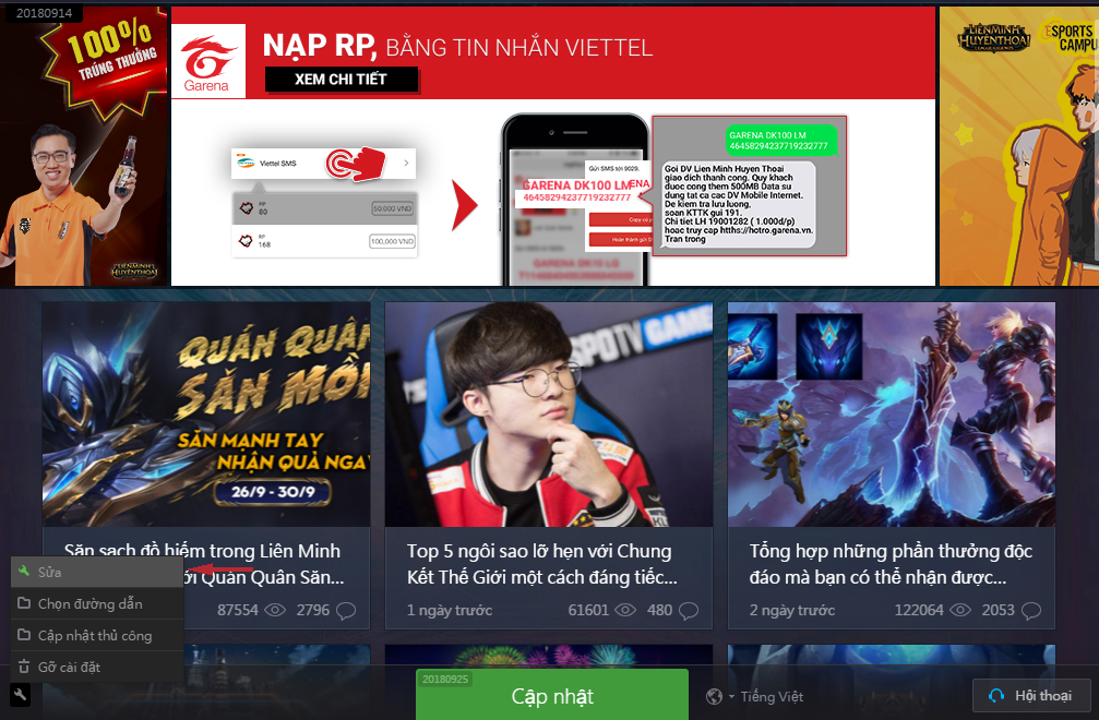 Trong quá trình trải nghiệm game gặp vấn đề lỗi, bạn chỉ cần chạy tính năng Sửa game tích hợp sẵn trong Garena 2.0, ngay lập tức bạn sẽ khắc phục được lỗi.